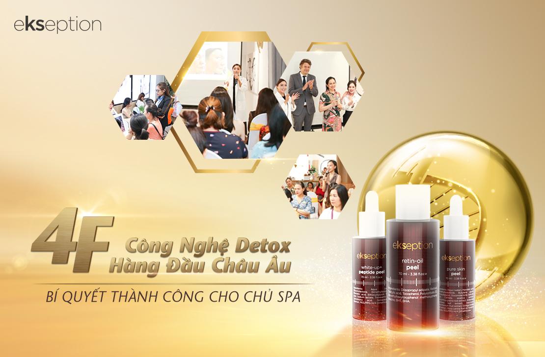 Hai liệu trình ứng dụng công nghệ 4F sử dụng sản phẩm chính của thương hiệu Ekseption. Thương hiệu đạt chuẩn quốc tế, được sản xuất theo công thức độc quyền từ châu u. Mỗi sản phẩm đều mang tính ứng dụng cao.