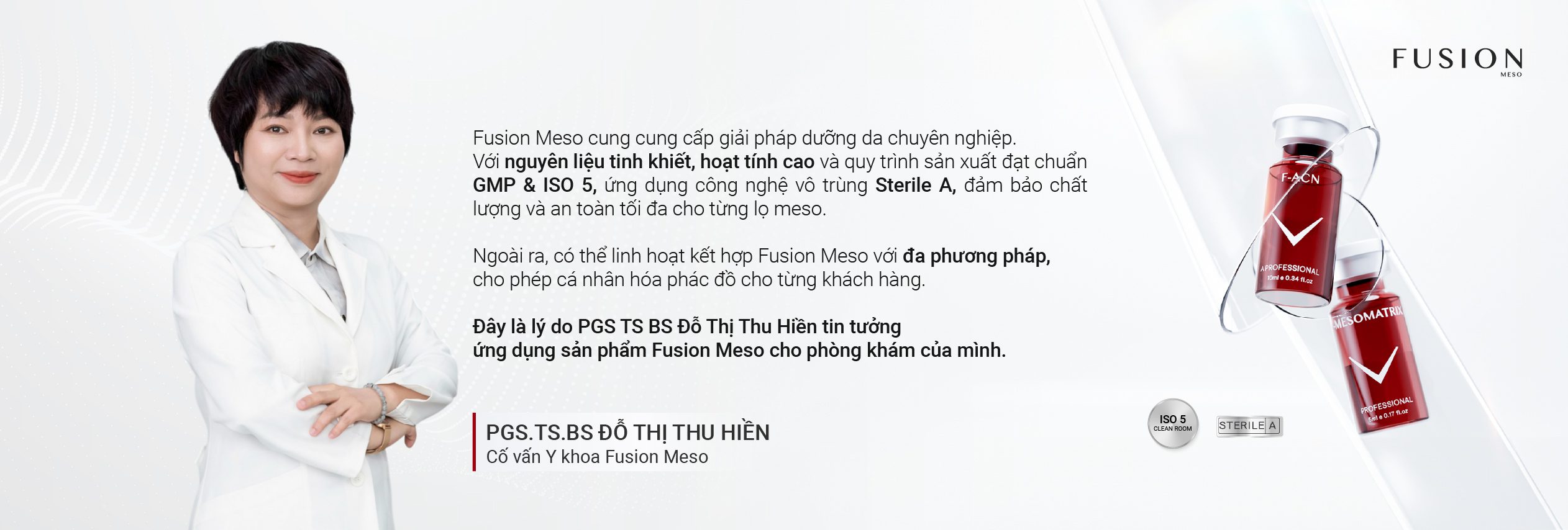 - Tất cả đều được kiểm nghiệm và chứng nhận lâm sàng, đạt chuẩn chất lượng ISO 13485 và ISO 9001. Fusion Meso mang đến giải pháp làm đẹp tự nhiên và an toàn