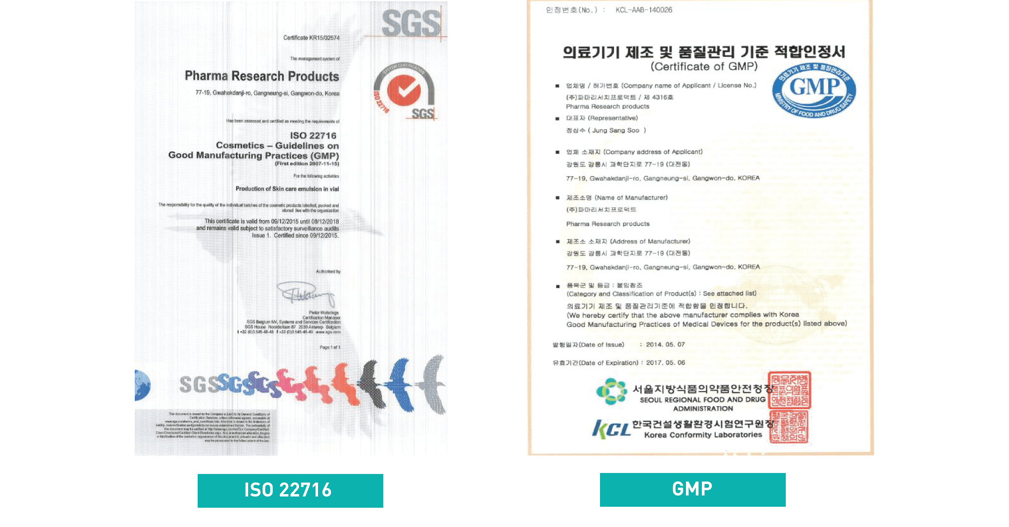 Được phê duyệt bởi FDA Hàn Quốc (MFDS), CE Châu Âu và chính thức xuất khẩu sang hơn 20 quốc gia khác nhau.