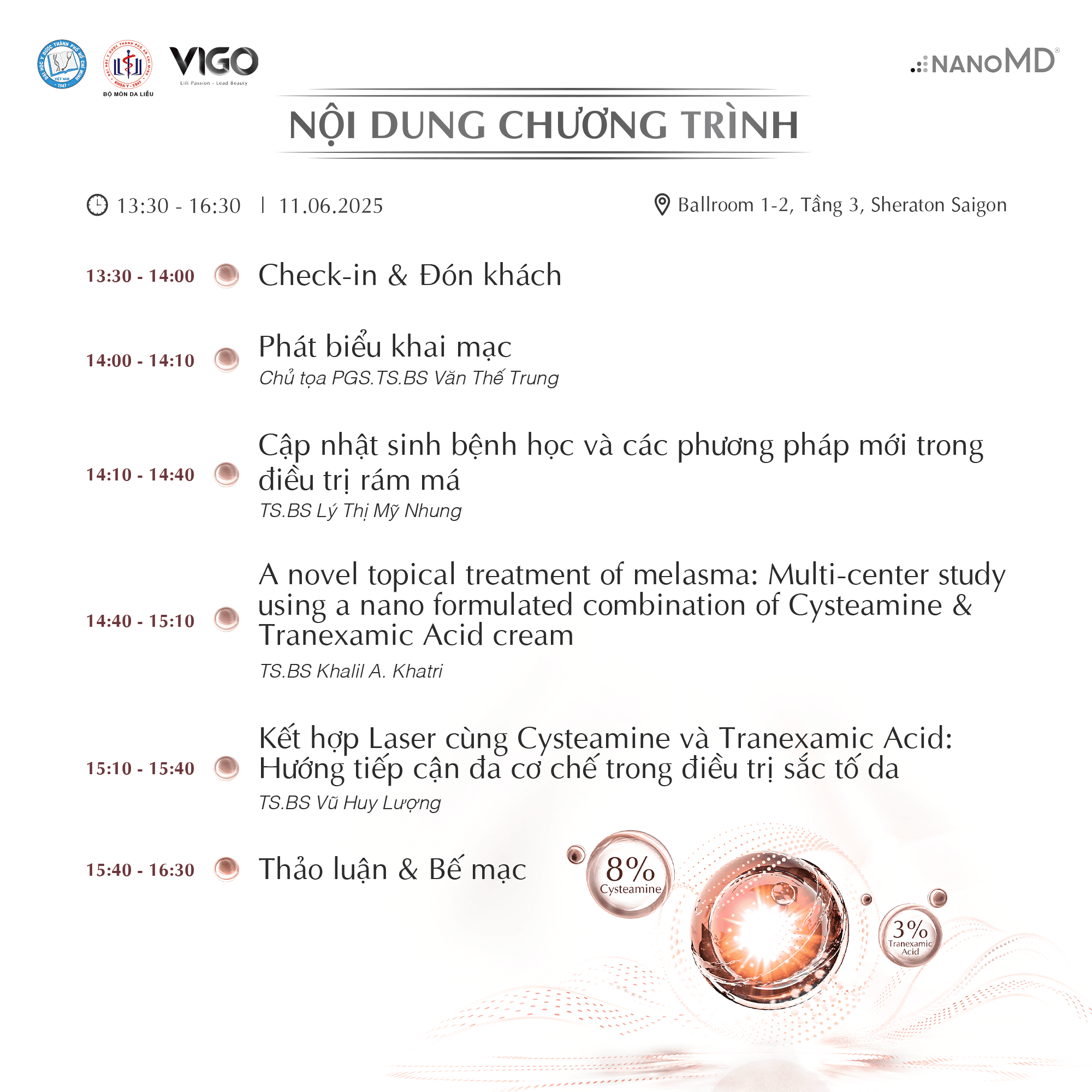 NanoMD x Bộ môn Da liễu – Trường ĐH Y Dược TP.HCM – “Tiếp cận điều trị nám đa phương thức – Vai trò của phối hợp Cysteamine & Tranexamic Acid” (11/06/2025)