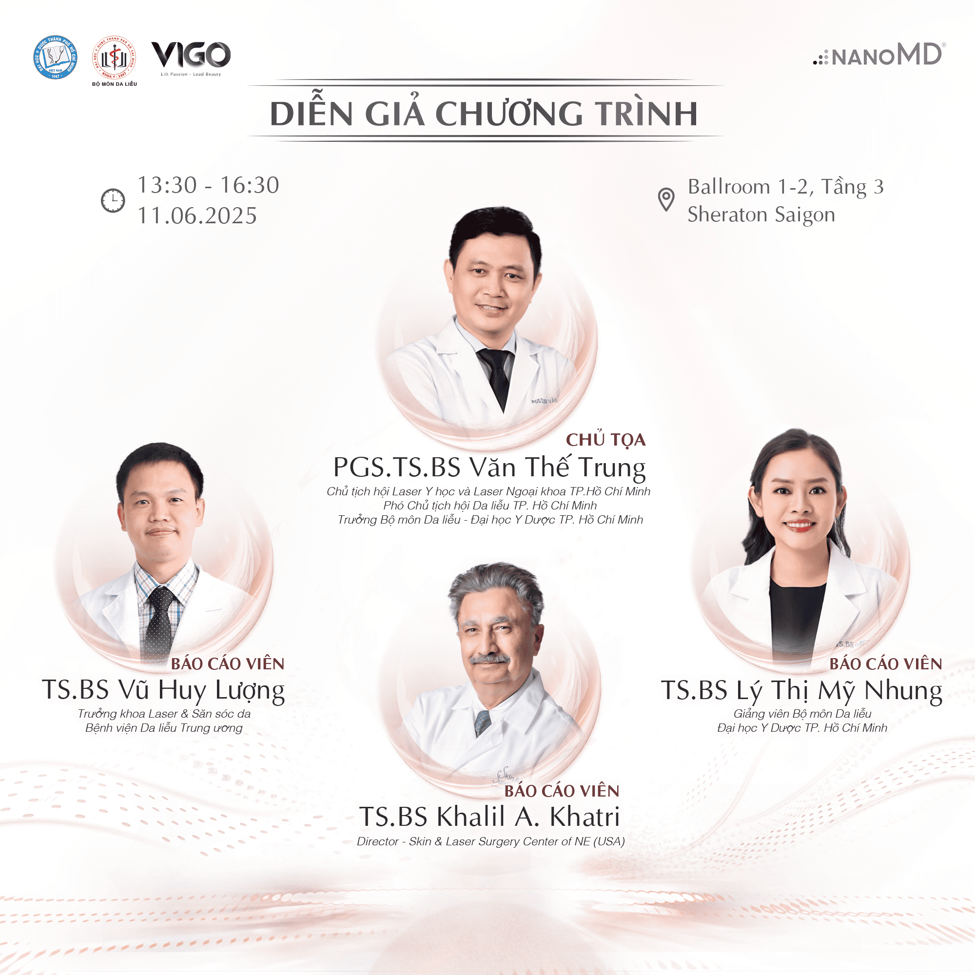 Sự kiện quy tụ dàn báo cáo viên là các chuyên gia đầu ngành trong lĩnh vực da liễu thẩm mỹ trong nước và quốc tế, hứa hẹn mở ra một không gian học thuật chuyên sâu, cập nhật xu hướng bền vững và các lựa chọn điều trị mới trong xử lý sắc tố kết hợp công nghệ cao hiện đại.