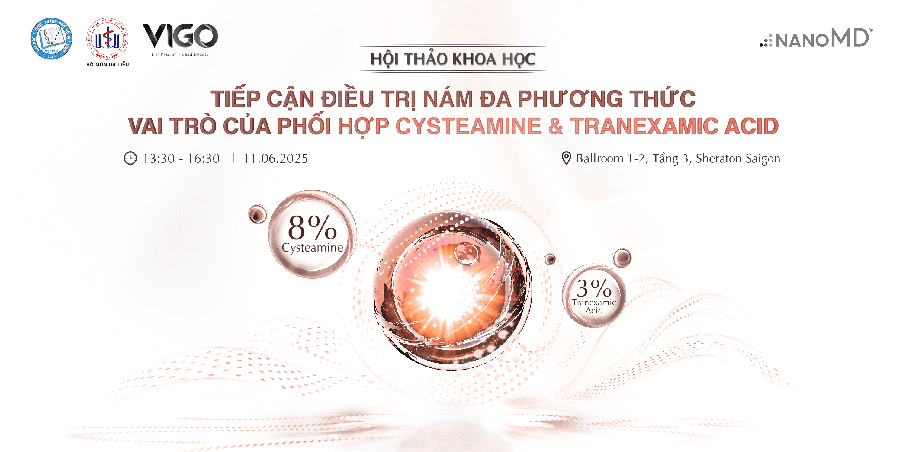 NanoMD vinh dự đồng hành cùng Bộ môn Da liễu – Trường ĐH Y Dược TP.HCM tổ chức Hội thảo khoa học: “TIẾP CẬN ĐIỀU TRỊ NÁM ĐA PHƯƠNG THỨC – VAI TRÒ CỦA PHỐI HỢP CYSTEAMINE & TRANEXAMIC ACID”.