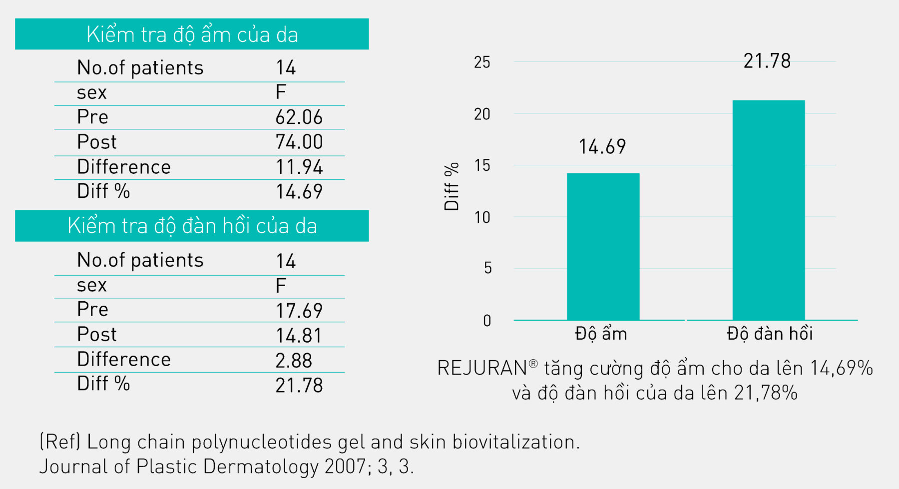 REJURAN® tăng cường độ ẩm cho da lên 14,69% và độ đàn hồi của da lên 21,78%