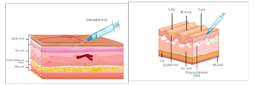 REJURAN® tái tạo độ đàn hồi của da bằng cách tái cấu trúc lớp biểu bì (epidermis) và lớp bì (dermis) khỏe mạnh từ làn da mỏng và hư tổn.
