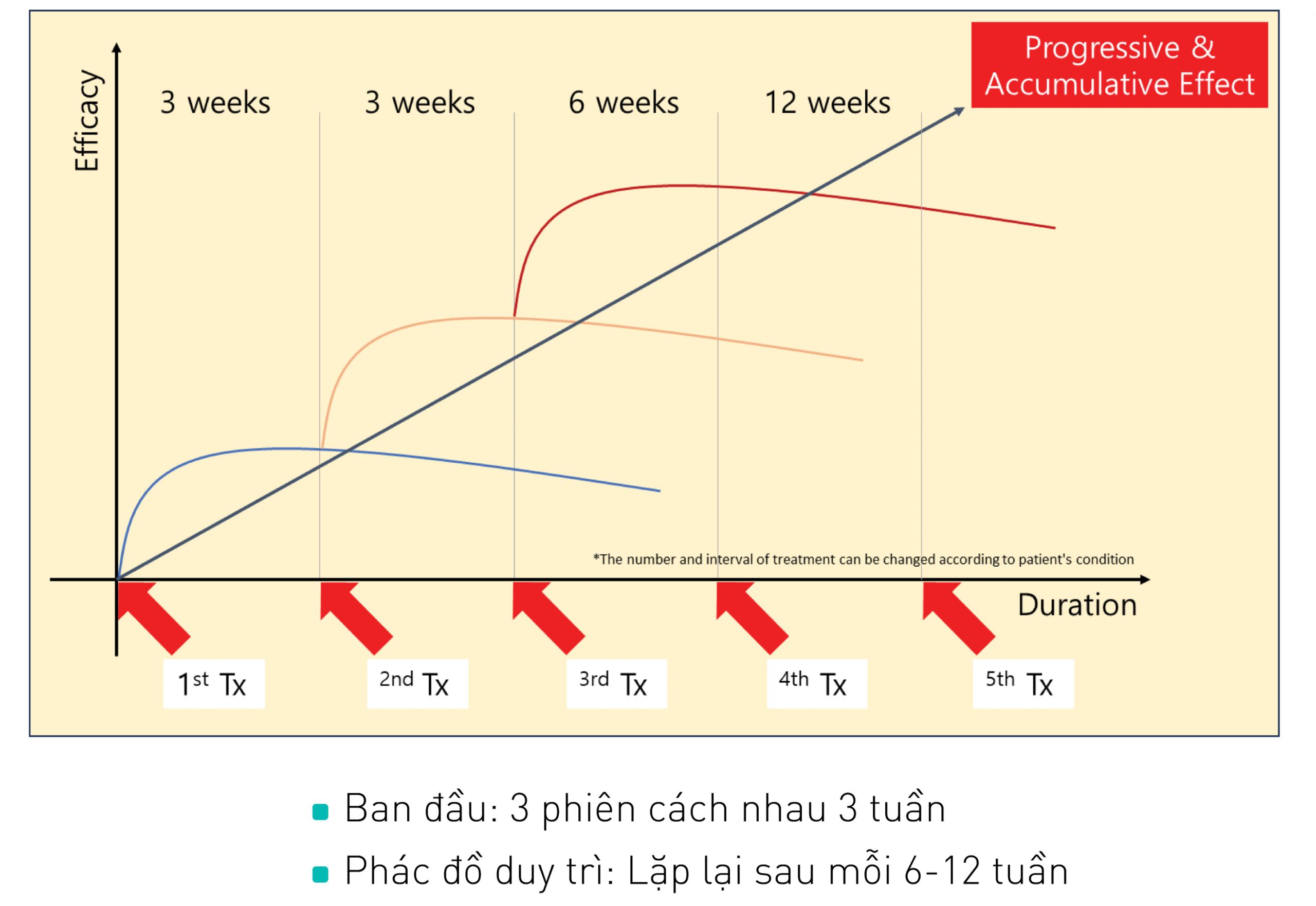 Liệu trình tấn công: 3 buổi điều trị, cách nhau khoảng 3-4 tuần/ lần